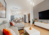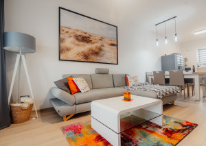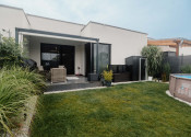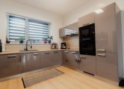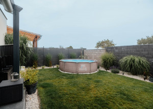 Dom je obývaný od 06/2021 a je veľmi vkusne zariadený. Dispozične pozostáva zo vstupnej chodby odkiaľ sa dostanete do priestrannej obývacej časti ( výška stropu 2,9m ) prepojenej jedálenským sedením s kuchynskou linkou (v kuchynskej linke sú zabudované spotrebiče ako varná doska, 60cm umývačka riadu, rúra) a dvoch samostatných spální so vstavanými šatníkmi. Následne je výstup na nádhernú terasu so sedením kde nájdete aj bazén s pieskovým filtračným zariadením a precízne upravenú záhradu s okrasnými kvetmi orientovanú na juh. V priestrannej kúpeľni je toaleta a vaňa. Vnútorná úžitková plocha je 84m2. Vonkajšia terasa je o výmere 12,3m2. Celkový pozemok má 245m2.
