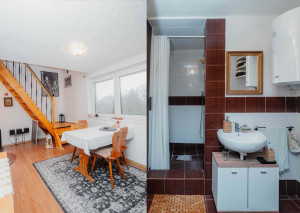 Kuchyňa je vybavená elektrickým sporákom s rúrou a sklokeramickou platňou. Podkrovie pozostáva z 2 samostatných obytných miestností a priestrannej galérie. V prípade potreby je možno z nej urobiť tretiu samostatnú izbu. Strop je drevený s rovnym dreveným pohľadom. Úžitková plocha nehnuteľnosti je 89 m² pozemok je o veľkosti cca 4 áre. Na nádvori sa ďalej nachádza betónový chodník so schodiskom až priamo ku chate a na balkón. Na pozemku sa nachádza jedno parkovacie miesto. Po pravej strane nájdeme posedenie s grilom a studňu s pitnou vodou. Na pozemku sa nachádza čistička odpadových vôd, a sú tam vedené IS (plyn, elektrina). Daná nehnuteľnosť sa nachádza len 15 minút od centra Košíc. Nehnuteľnosť je možné využívať celoročne. Predáva sa s vnútorným zaridením. V okolí sa býva celoročne.