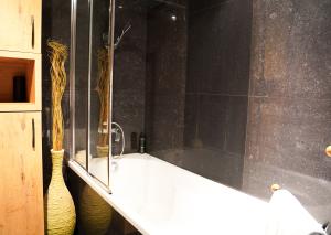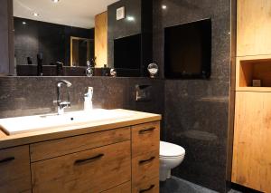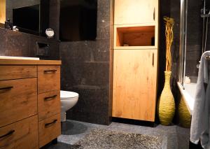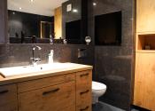- veľká KÚPEĽŇA, taktiež z mramorových kachličiek, so zaťahovacími dverami a kvalitnou sanitou, je spojená s WC