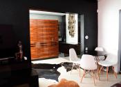 Orientácia bytu je na sever a juh, kde na južnej strane z kuchyne je výstup na novo zasklennú loggiu (2023). Kompletnou rekonštrukciou, ktorá bola urobená v roku 2019 s dôrazom pre detail, bola zmenená dispozícia - kuchyňa spojená s obývacou izbou, ktorú delia zaťahovacie dvere robené na mieru, zahŕňa: