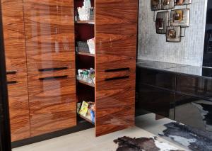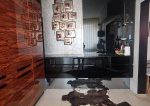 Nová LUXUSNÁ VSTAVANÁ kuchyňa s otvarateľnými dverami na mieru, z MRAMOROVÉHO kameňa, z ktorého je aj drez. Varná doska je vložená do mramoru. Súčasťou linky sú vysoko kvalitné spotrebiče, ktoré ostávaju v byte, ako napr. práčka, el. rúra, chladnička s mrazničkou, kávovar, jedálensky stôl a stoličky,práčka.
