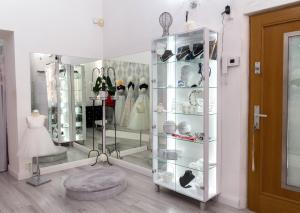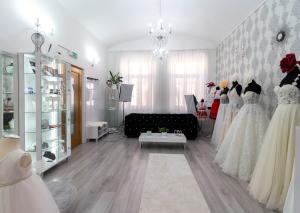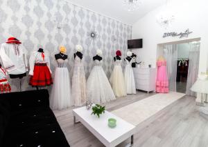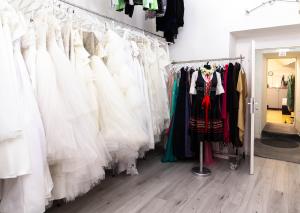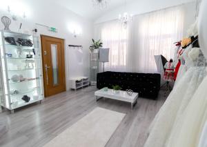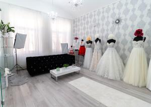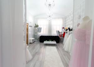 Vstupná miestnosť slúži ako prezentačná miestnosť pre nevesty. V ďalšej miestnosti nájdete veľké množstvo šiat na výber s karabínkou.