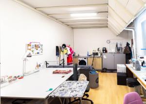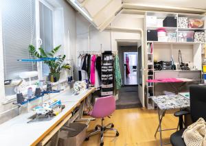 Tretia miestnosť je úplne zariadená krajčírska dielňa s 3 priemyselnými šijacími strojmi značky Yuki a Jack, práčkou, sušičkou, žehličkou.