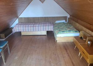 Murovná chata bola postavená v 90.rokoch na betónovom základe a je v dobrom technickom stave so sedlovou, plechovou strechou. V chate je zavedená elektrina 220/380 V. Zastavaná plocha chaty je 22m2 a má tri podlažia. Na prvom podlaži je kuchynka s pieckou. Na druhom je obývacia časť s balkónom, kde sú krásne výhľady na okolie. Na tretie spiacie podlažie sa dostanete s obývacej miestnosti drevenými schodíkmi, kde sú postele a ďalší balkón s výhľadmi. V spodnej časti chaty je miestnosť na náradie a 3x 1000l nádoby na dažďovú vodu, ktorá slúži na polievanie záhradky.