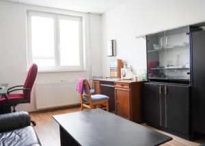 Objekt je dispozične riešený na oboch podlažiach tak, že prístup do jednotlivých miestností je zo spoločného chodbového priestoru, ktorý prebieha v strede po celej dlžke 1. aj 2. nadzemného podlažia. Je možnosť spájať jednotlivé miestnosti podľa požiadaviek, resp. vytvorenia väčšej plochy a viacerých vstupov. V zadnej časti budovy sú aj dve priestranné garáže ( vhodné aj ako sklad, resp. pre väčšie úžitkové autá ).