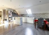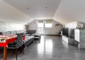 Vrchné podlažie: Na poschodí sa nachádza veľká obývacia izba spojená s kuchyňou, stredový panel v kuchyni, dve samostatné izby, kúpeľňa so sprchovacím kútom a WC. Z obývacej izby je vstup na balkón s krásnym výhľadom na Košice.
