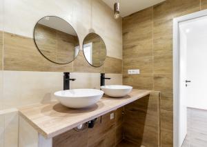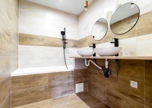 - kúpeľňa s vaňou a dvomi umývadlami,