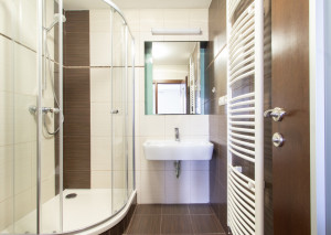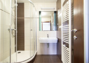 Nehnuteľnosť dispozične pozostáva z veľkej vstupnej chodby so vstavaným šatníkom. Z nej je doprava vstup do prvej kúpeľňe s vaňou a toaletou.