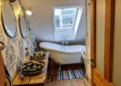Kvalitné prírodné materiály – Celý byt je zariadený s dôrazom na prírodné prvky – drevené podlahy, sklo a keramika dodávajú priestoru jedinečnú atmosféru a nadčasový štýl.