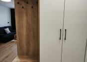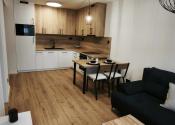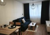 Po vstupe do bytu sa nachádza predsieň so šatníkovou skriňou, ktorá vedie do otvorenej, svetlej obývacej izby zariadenej s novým rozťahovacím gaučom, konferenčným stolíkom, TV stolíkom s TV s Wifi pripojením a prepojenej s modernou kuchyňou so vstavanými spotrebičmi ako je varná doska, digestor, elektrická rúra, zabudovaná chladnička s mrazničkou. Vybavenosť kuchyni - rýchlovarná kanvica, mikrovlnka, elektrická indukčná doska s elektr. rúrou a jedálenským kútom so stoličkami a základným vybavením kuchyne. Spálňa je samostatná s manželskou posteľou a vstavanou skriňou. Kúpeľňa je vybavená vkusnou sanitou, sprchovacím kútom, práčkou a WC. Byt o výmere 36m2 sa nachádza na ideálnom 3. posch. s výťahom.