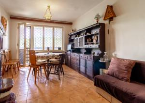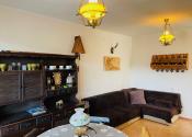 Vnútorný priestor je navrhnutý s dôrazom na pohodlie a vkus. Priestranná kuchyňa je plne vybavená a prepojená s útulnou obývacou izbou, ktorá dýcha teplom domova. Dominantou priestoru je veľká, funkčná štýlová pec, ktorá nielen krásne dotvára interiér, ale zároveň poskytuje príjemné teplo počas chladnejších dní. Tri komfortné spálne ponúkajú dostatok miesta pre celú rodinu či hostí, pričom dve veľké balkóny poskytujú nádherný výhľad na okolitú prírodu.