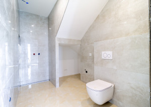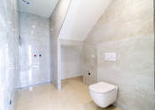 Poschodie: 3 samostatné izby, šatník, veľká kúpeľňa s vaňou a sprchovým kútom, WC, 2x loggia