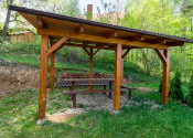 Chata je postavená z kvalitných materiálov, má pevnú murovanú konštrukciu a plechovú strechu, ktorá zaručuje dlhoročnú životnosť. Okolie je nádherne upravené – rozľahlá, starostlivo udržiavaná záhrada obklopuje celý pozemok a poskytuje dokonalý priestor na oddych. Nechýba ani priestranný altánok, kde si môžete vychutnávať dlhé letné večery, či vonkajšie miesto na gulášik, ideálny na príjemné rodinné stretnutia.