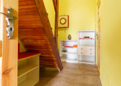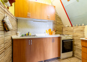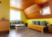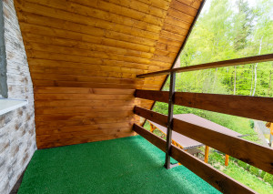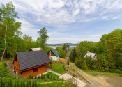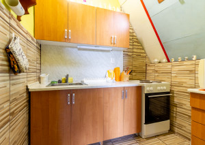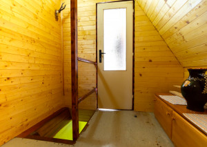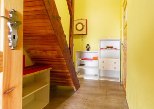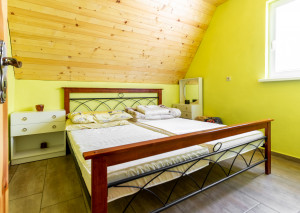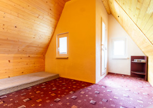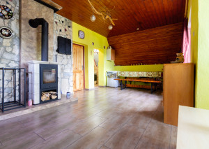 Vnútorný priestor je navrhnutý s dôrazom na pohodlie a vkus. V spodnej časti chaty sa nachádza kuchyňa prepojená s jedálenskou časťou a obývacou izbou, ktorá dýcha teplom domova. Dominantou priestoru je krb, ktorý nielen krásne dotvára interiér, ale zároveň poskytuje príjemné teplo počas chladnejších dní. Tri komfortné spálne ponúkajú dostatok miesta pre celú rodinu či hostí, pričom priestranný balkón poskytuje nádherný výhľad na okolitú prírodu či vodnú nádrž Domašu.