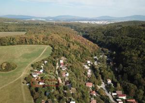 Chata má 40 m² a stojí na pevnom betónovom základe. Vnútorné priestory sú riešené prakticky a pohodlne – nájdete tu kuchynku, kúpeľňu s WC a útulný krb, ktorý dodá domovu nezameniteľnú atmosféru. Vďaka zavedenej elektrine je chata okamžite pripravená na používanie – bez ďalších investícií. Materiál betón, tehla kváder . Rozprestiera sa na 493 m² slnečného a hore rovinatého dolu mierny svah pozemku. Na pozemku je vlastná studňa (55 m), ktorá zabezpečuje dostatok vody počas celého roka. V záhrade si môžete vytvoriť vlastný raj – od relaxačného kútika s lehátkom a bylinkovou záhradkou, až po priestor na pestovanie ovocia a zeleniny. V zadnej časti pozemku je dostatok priestoru na dobudovanie ďalšej miestnosti a terasy alebo veľkého altanku.