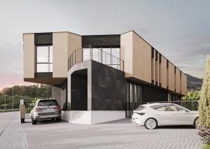 Schodisko na 2.NP je riešené samostatným bočným vstupm, čo dáva možnosť aj budovu rozdeliť na samostatné prenájmy pre viac prevádzok.
