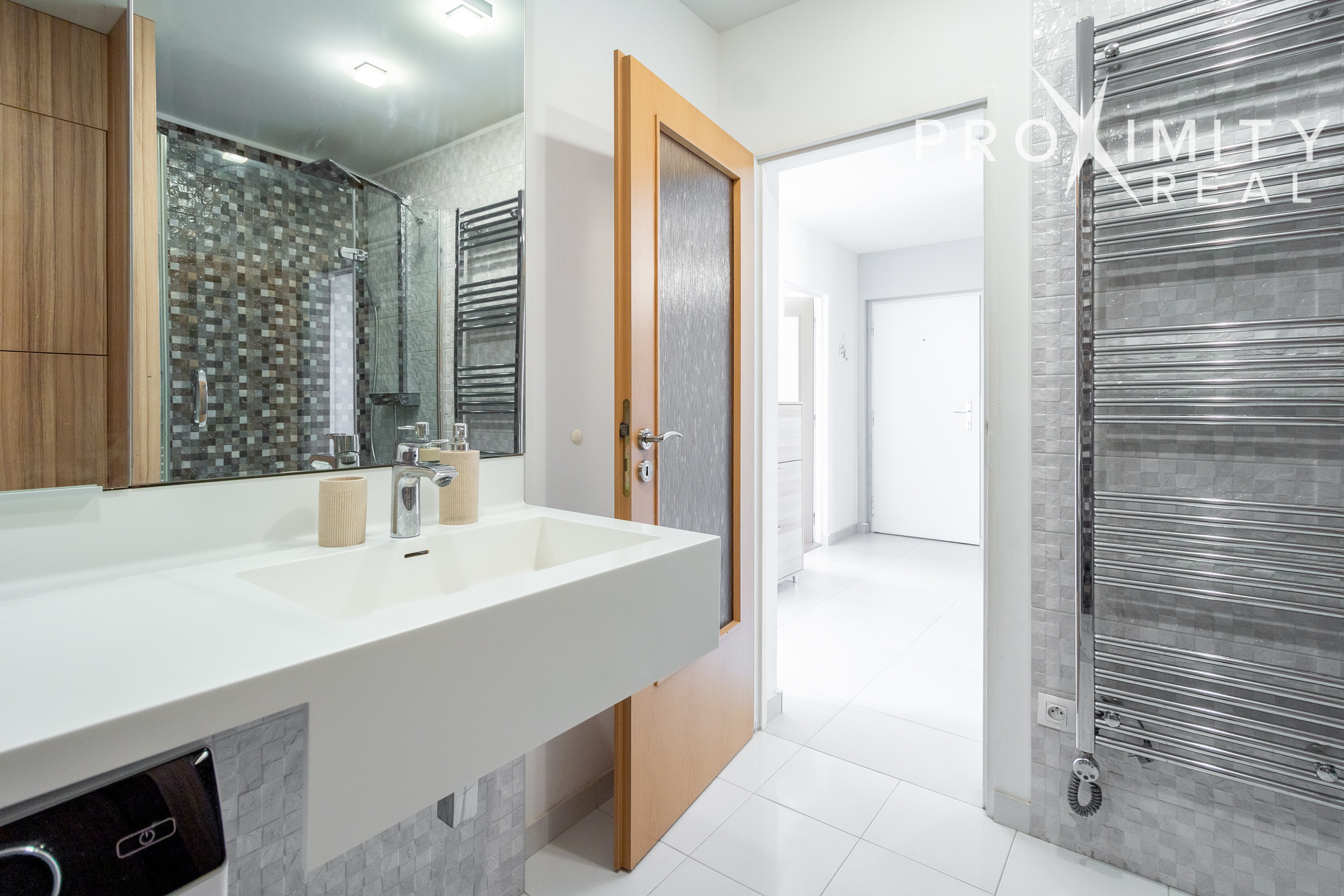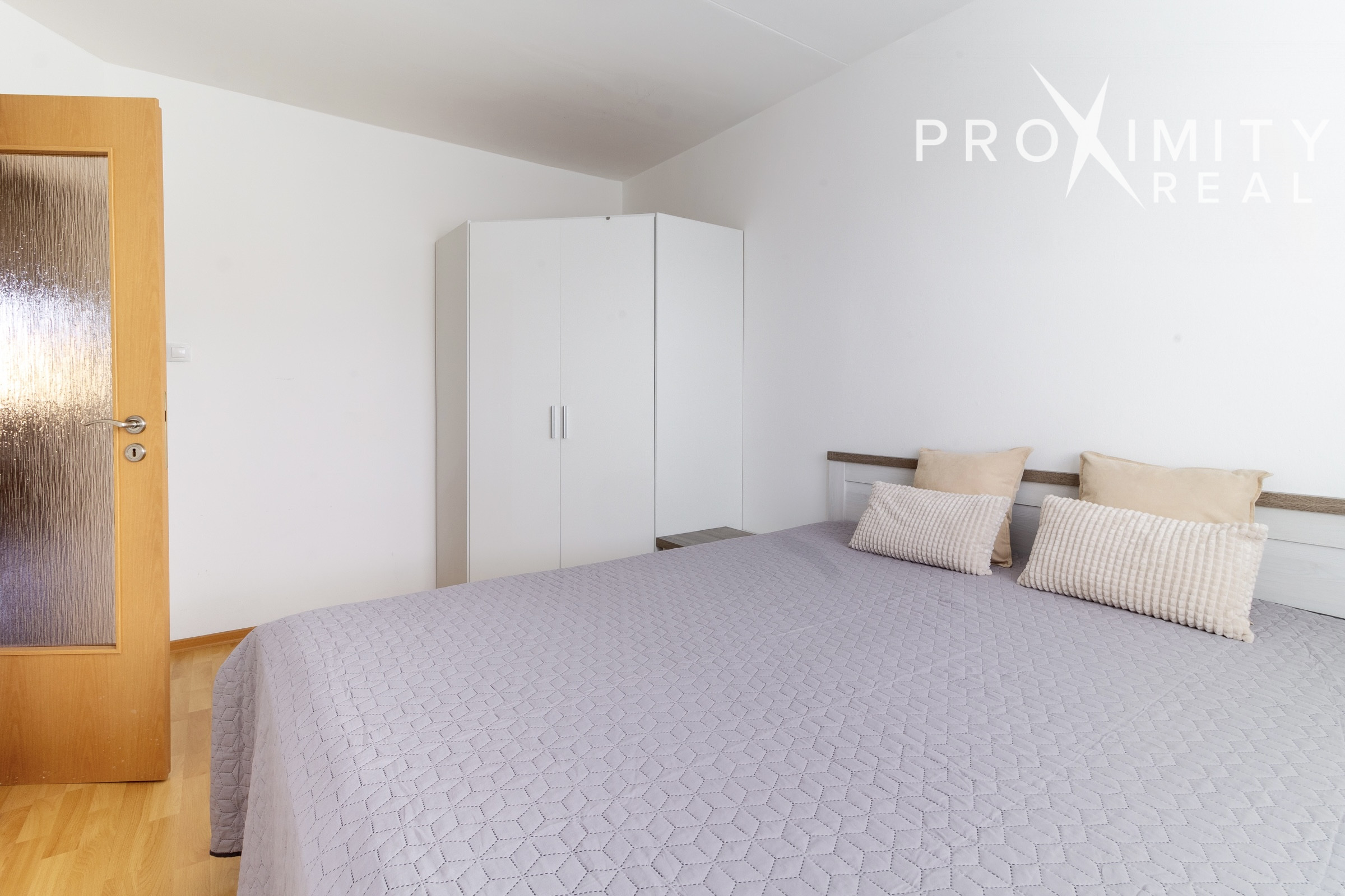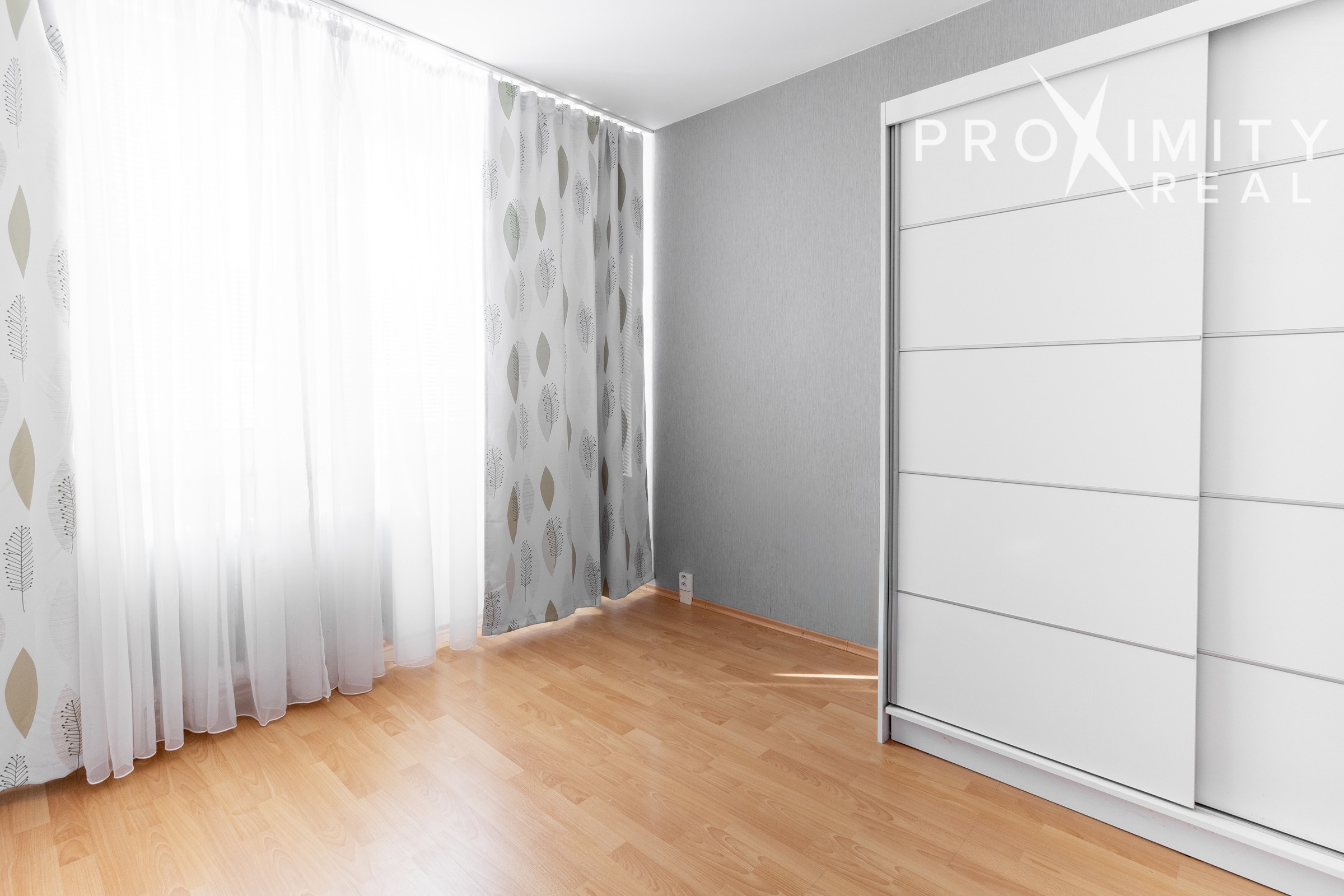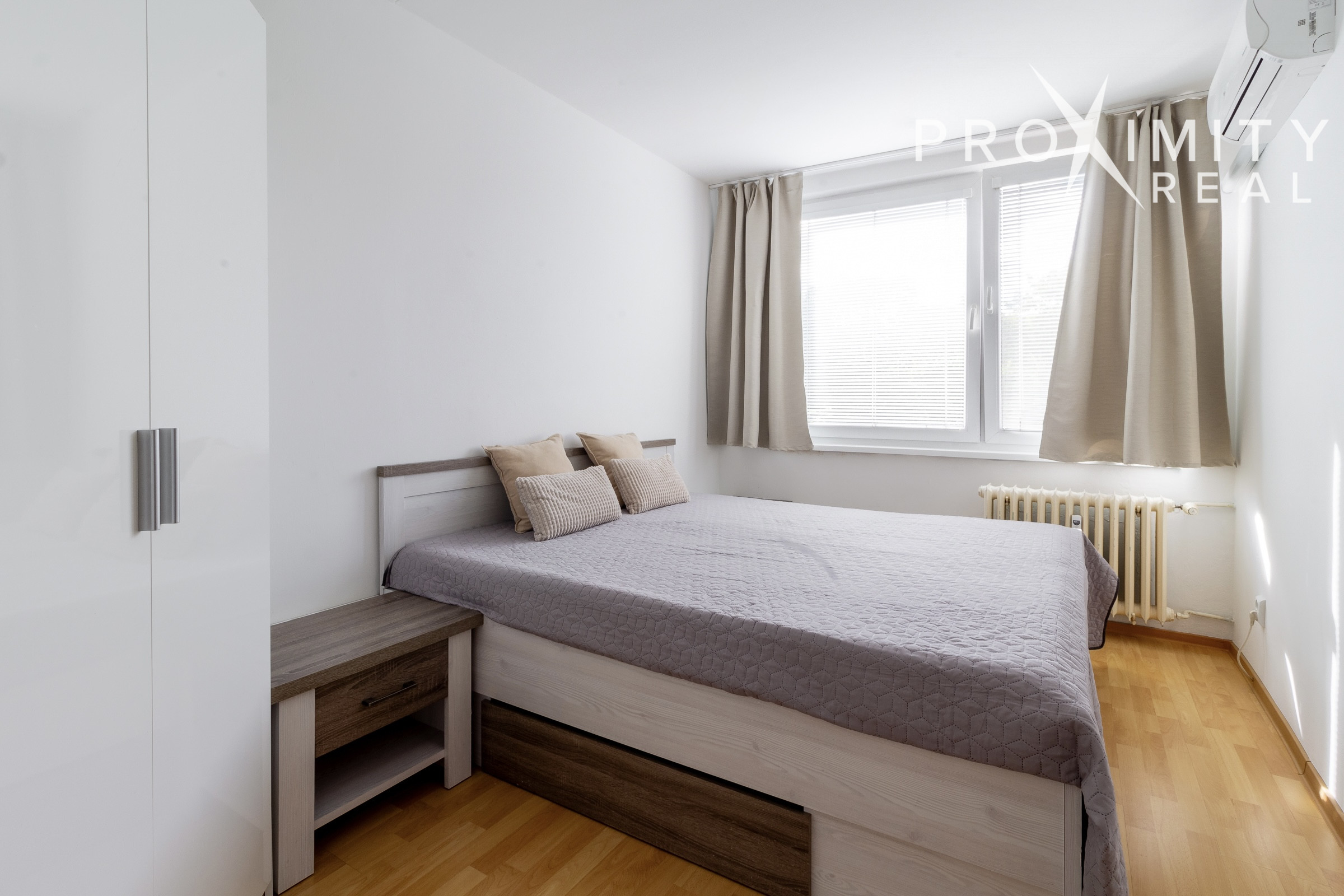 Tento veľmi pekný, svetlý a teplý byt má výmeru 68 m² a nachádza sa na 4. poschodí zo 7. Je orientovaný tak, že obývacia izba s kuchyňou sú na východ a spálne na západ, čo zabezpečuje príjemné svetlo počas celého dňa. V letných mesiacoch spálne chladia klímy, v obydvoch spálňach, s jednou vonkajšou jednotkou ( Multisplit).