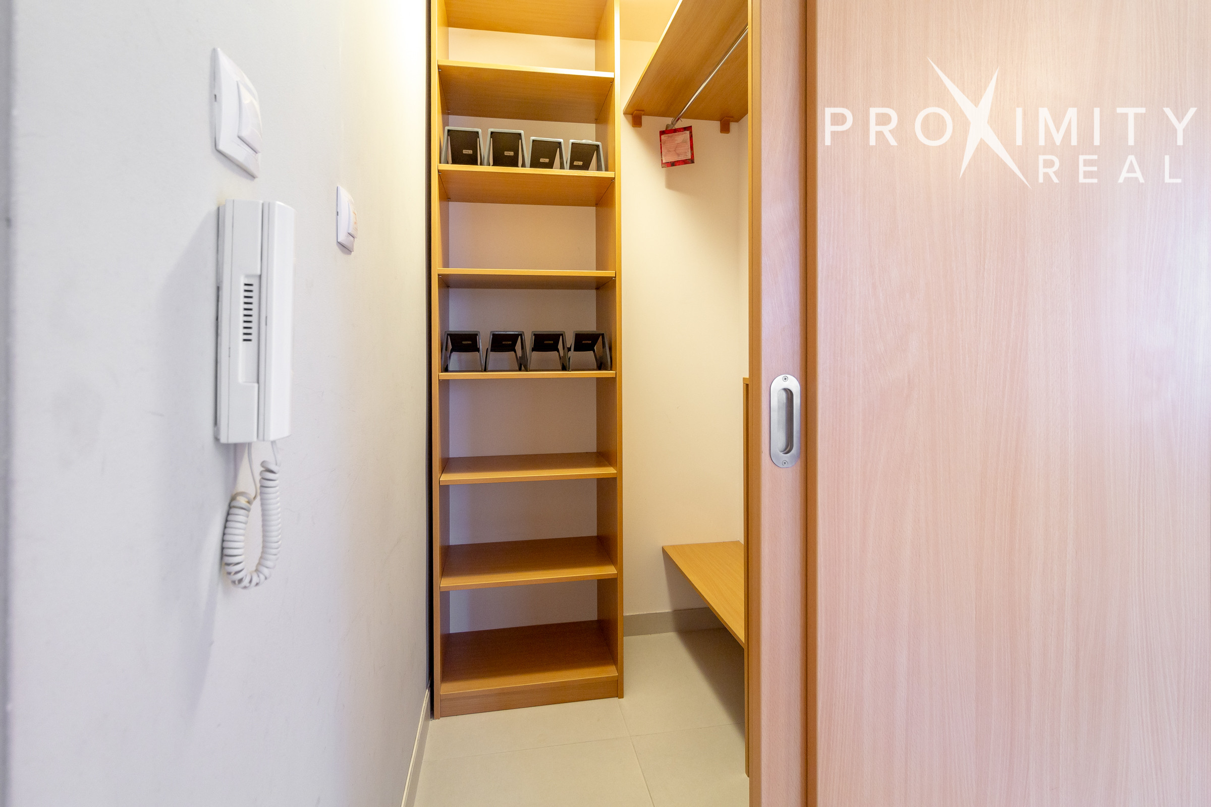 V byte je veľký, priestranný šatník a aj vstavaná skriňa, čo zabezpečuje dostatok úložného priestoru.