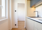 Jedna z izieb disponuje loggiou a klimatizáciou, ideálna ako spálňa či oddychová miestnosť. Obe izby sú orientované na západ, čo im dodáva príjemnú svetelnú atmosféru počas popoludnia. Kuchyňa a obývacia izba smerujú na východ, takže každé ráno priestor zaplaví prirodzené denné svetlo.