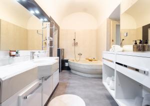 - bathroom with a large bathtub + separate WC