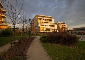 Nehnuteľnosť sa nachádza na dobrom mieste s kompletnou občianskou vybavenosťou ( potraviny FRESH a lekáreň priamo pri bytovom dome ). Uzavretý areál ponúka rezidentom udržiavanú zeleň a dostatok priestoru pre trávenie voľného času ( detské ihriská, altánok na grilovanie, fontána,....).Bezprostredná blízkosť Parku Anička, kde nájdete tenisové kurty, bežecké trate, zábavný areál a kúpalisko garantujú kľudné a prémiové bývanie na skok do centra mesta.