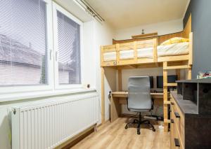 Vykurovanie domu zabezpečuje plynový kondenzačný kotol v kombinácii s kotlom na tuhé palivo, čo umožňuje zvoliť si najvýhodnejší spôsob kúrenia počas celého roka. Dom je napojený na plyn a v obci je dostupná aj optická sieť Antik, ktorá zabezpečuje rýchle a stabilné internetové pripojenie – ideálne pre prácu z domu aj moderné digitálne fungovanie domácnosti.