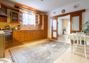 Prízemie o výmere 229m2 disponuje kuchynskou časťou decentne oddelenou od obývacej izby s jedálňou. Dominantou je mramorový plne funkčný krb. V dome sú kvalitné drevené podlahy, drevené okná rovnako ako aj schodisko, podlahové vykurovanie ( okrem suterénu ). Súčasťou prízemia je aj 53m2 garáž.