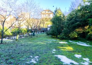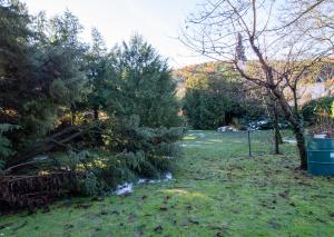 Z obývacej časti je krytá terasa a výstup do záhrady na ktorej zadnom konci sa nachádza záhradný domček slúžiaci ako vínna miestnosť. Na záhrade sú okrasné dreviny a stromy.