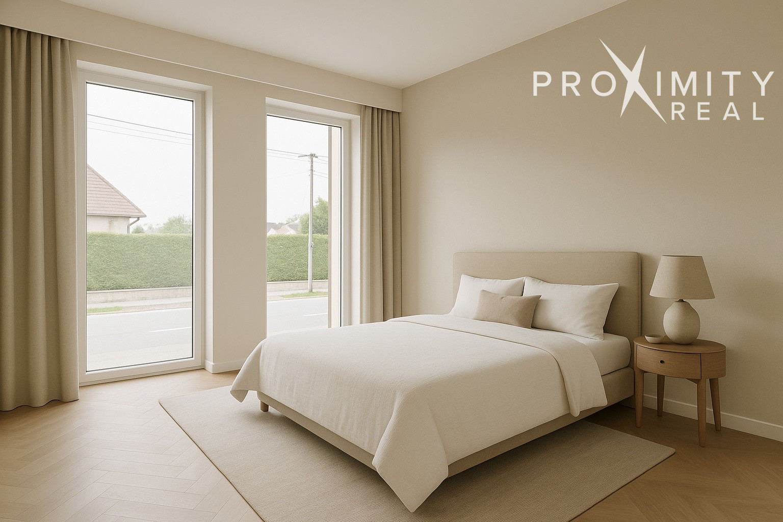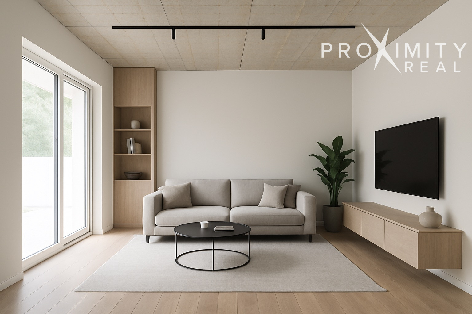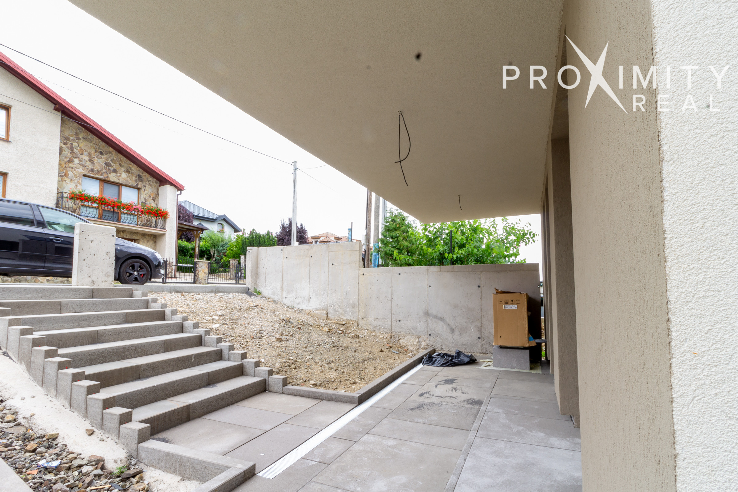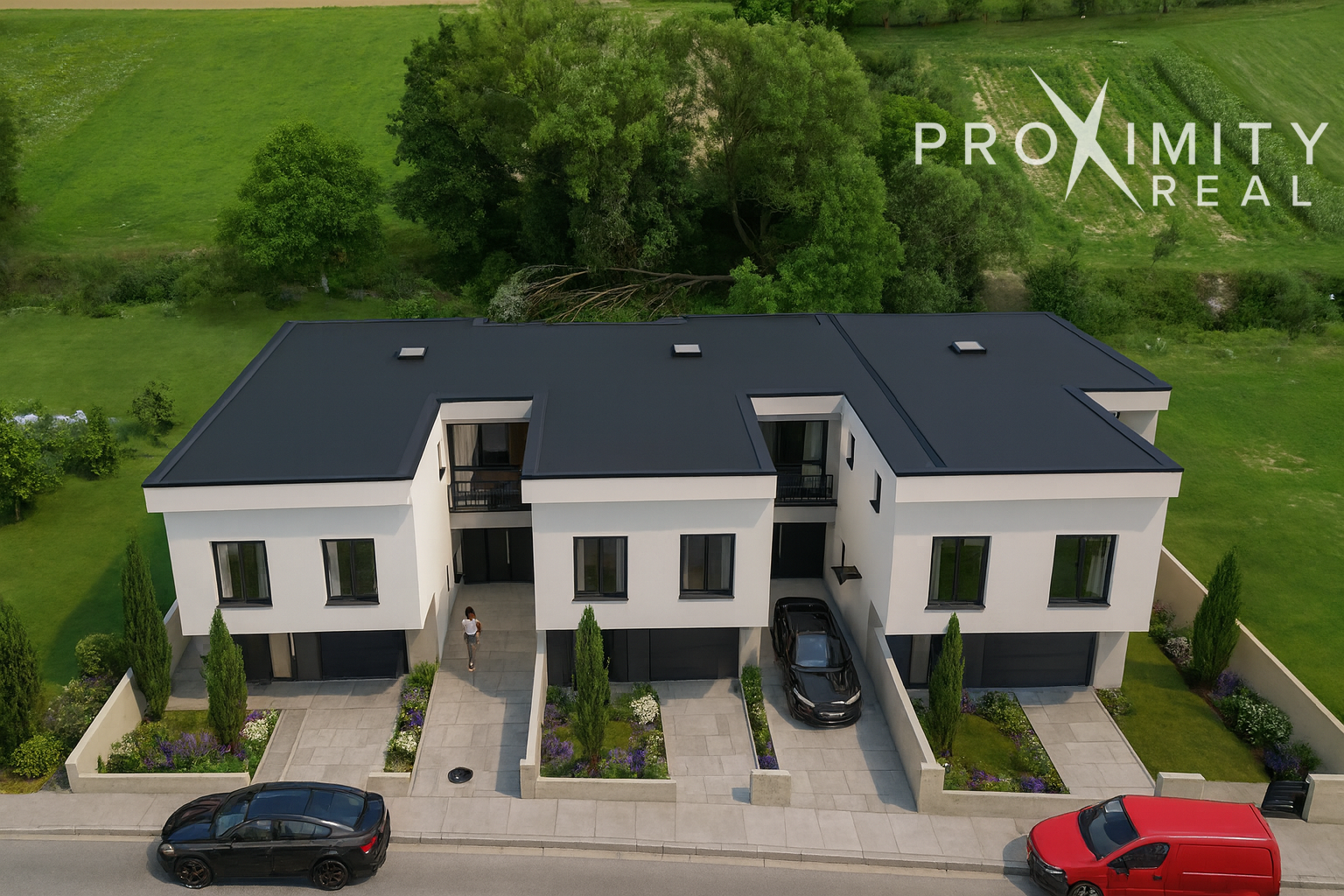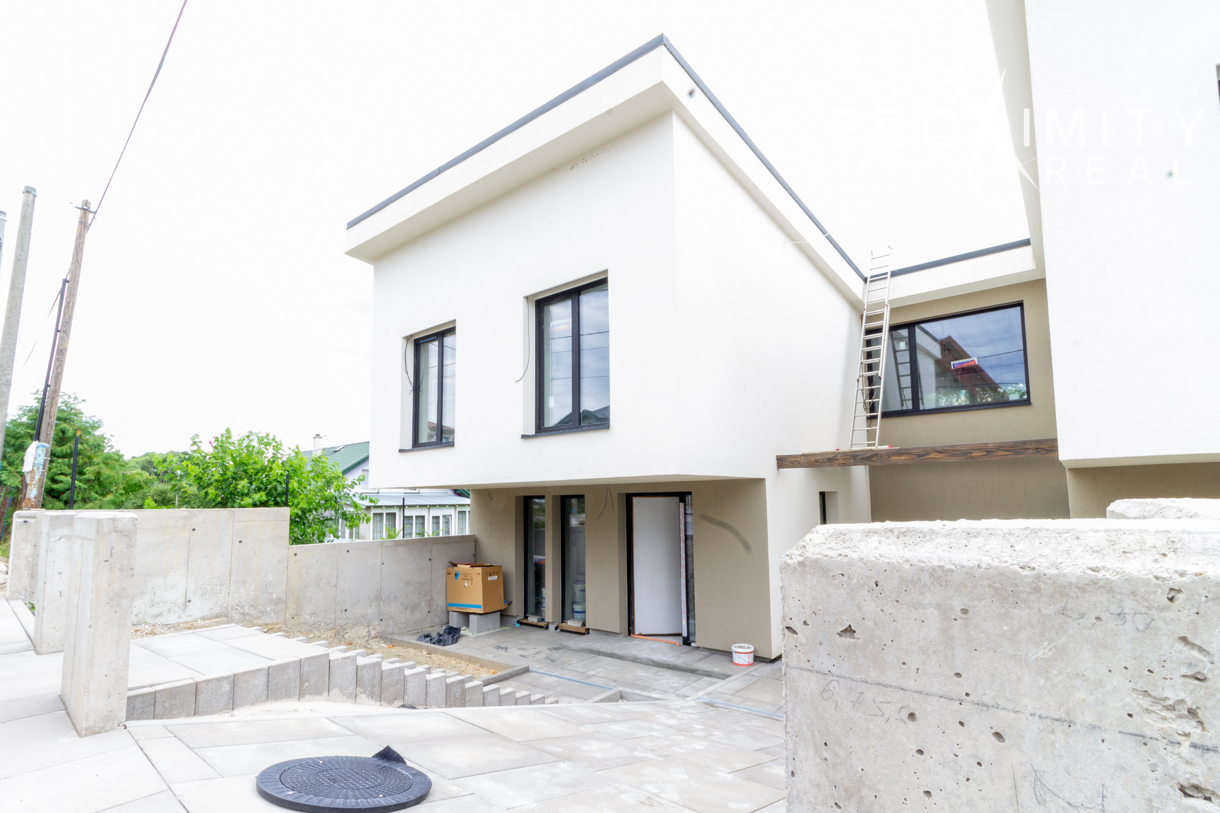 Moderný dvojpodlažný dom s čistými líniami, kvalitnými materiálmi a dôrazom na funkčnosť. Na prízemí sa nachádza obývacia izba prepojená s kuchyňou, technická miestnosť a kúpeľňa s WC. Na poschodí sú tri izby, kúpeľňa a chodba so schodiskom s prirodzeným osvetlením.