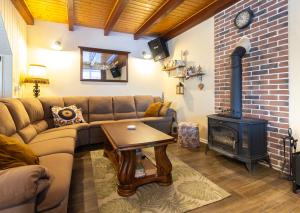 Na prízemí sa nachádza vstupná chodba, kuchyňa, obývačka s krbom, kúpeľňa, ktorej rekonštrukcia prebehla pred 2 rokmi a špajza. Drevenými schodmi vyjdete na poschodie, kde je šatník a dve spálne.