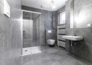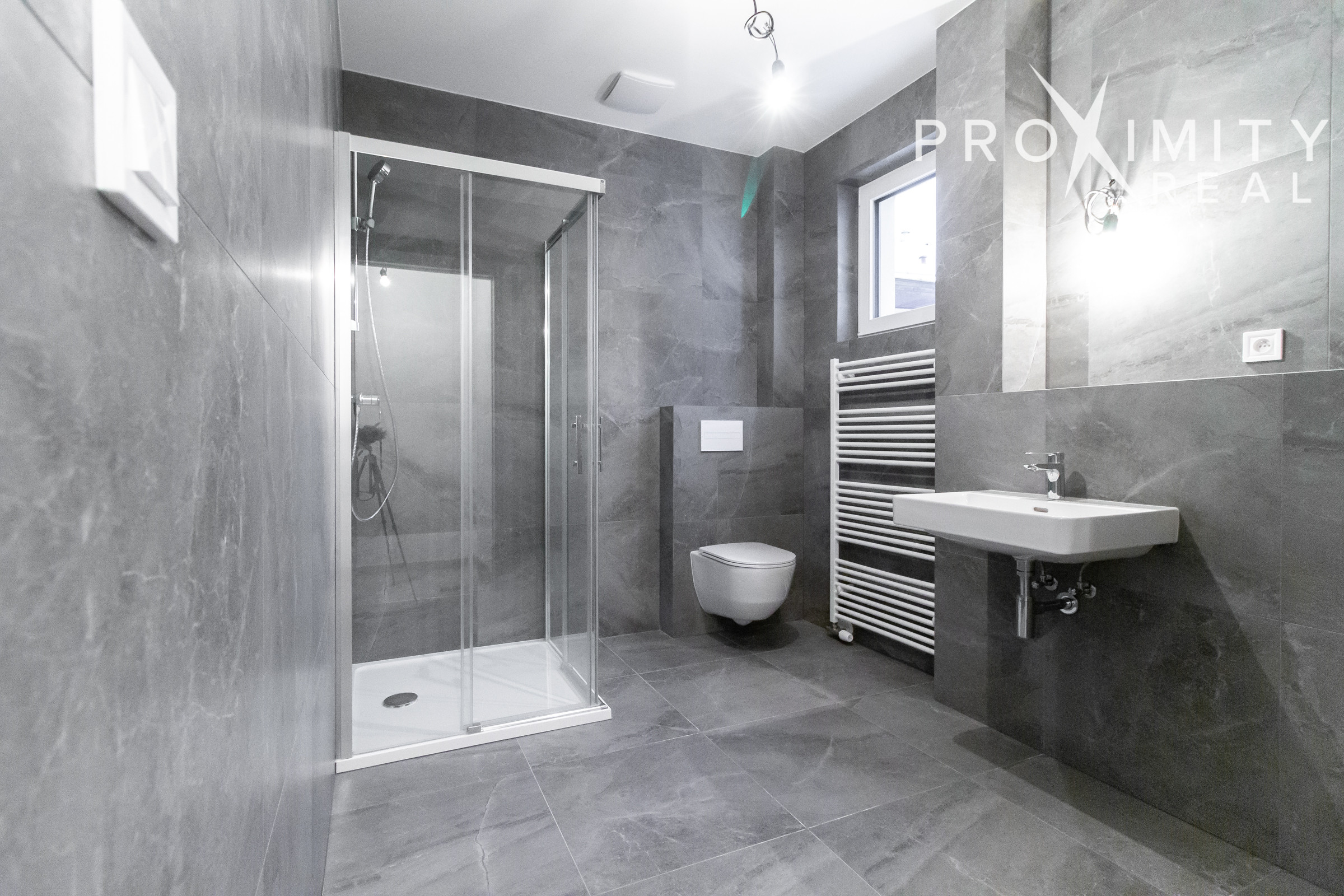 - Priestranná kúpeľňa, v ktorej sa nachádza sprchový kút, je spojená s WC, vybavená kvalitnou sanitou a disponuje oknom, čo zabezpečuje dostatok denného svetla.