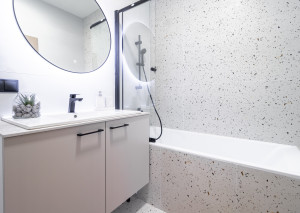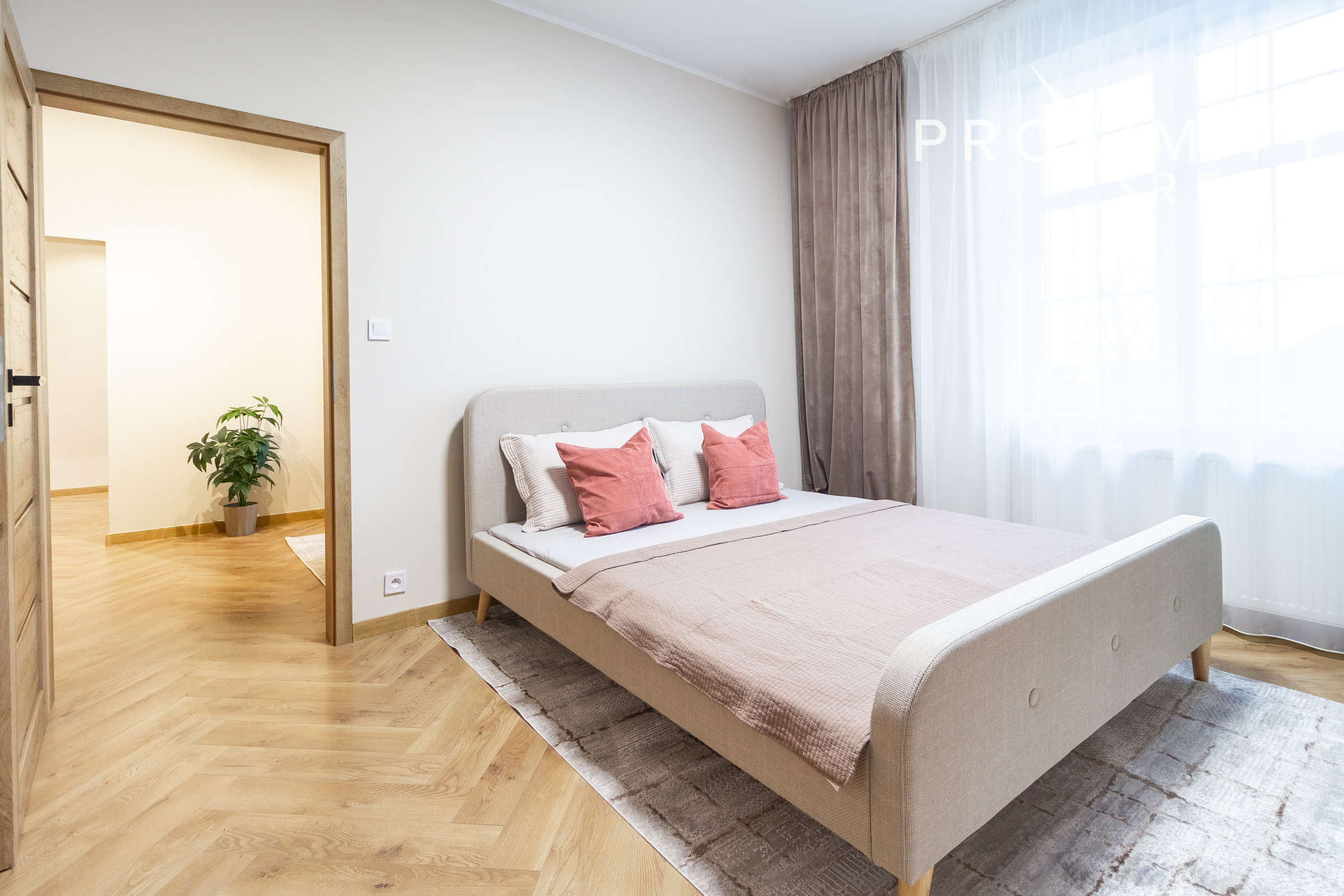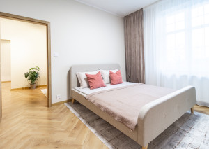 V priestrannej spálni so vstavanou skriňou, nájdete vlastnú kúpeľňu a samostatný walk-in šatník. V kúpeľni je vaňa a umývadlo. Samozrejmosťou je aj oddelené WC s umývadlom.