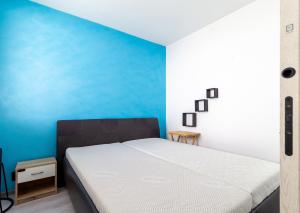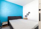 Spálňa je samostatná, vybavená manželskou posteľou a pôsobí ticho a útulne – ideálne miesto na oddych a kvalitný spánok.