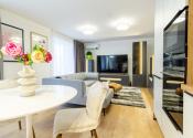 Byt sa predáva kompletne zariadený špičkovým nábytkom a spotrebičmi – stačí si priniesť osobné veci k okamžitému nasťahovaniu.