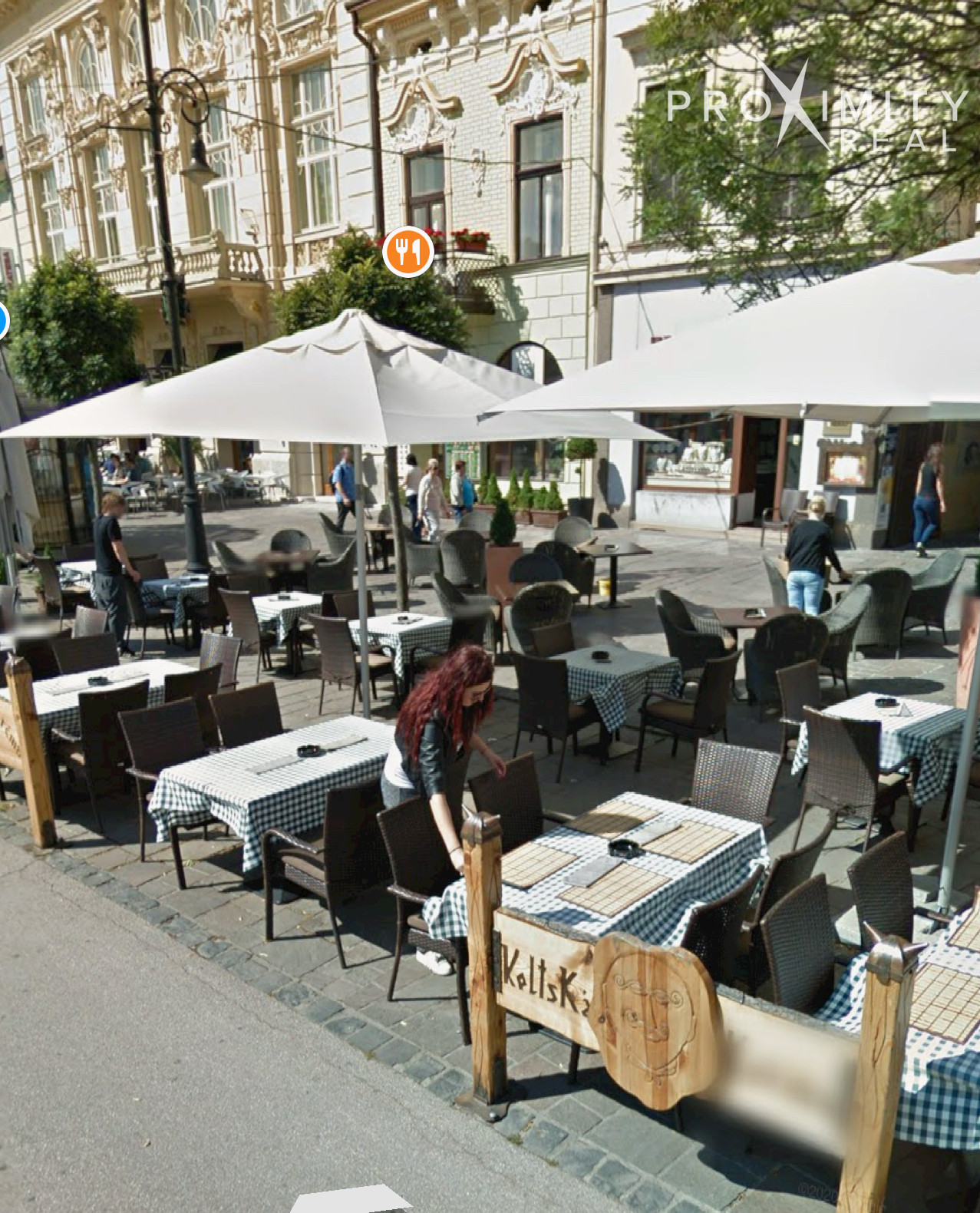 Prevádzka sa nachádza priamo na pešej zóne s vysokou celodennou frekvenciou ľudí, čo predstavuje výrazný potenciál pre úspešný gastronomický koncept.