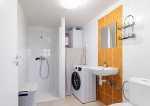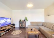 Na prízemí sa nachádza obývacia izba orientovaná na západ, ktorá je príjemne presvetlená popoludňajším slnkom. Spálňa orientovaná na severovýchod pôsobí pokojne a poskytuje ideálny priestor na oddych. Kuchyňa s orientáciou na západ a juh ponúka praktické usporiadanie a zároveň z nej vedie priamy vstup na zastrešenú terasu s výmerou približne 20 m², kde si môžete vychutnať rannú kávu alebo príjemné chvíle na čerstvom vzduchu. Súčasťou prízemia je aj kúpeľňa spojená s WC so sprchovacím kútom.