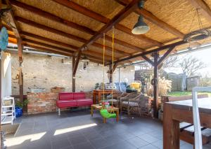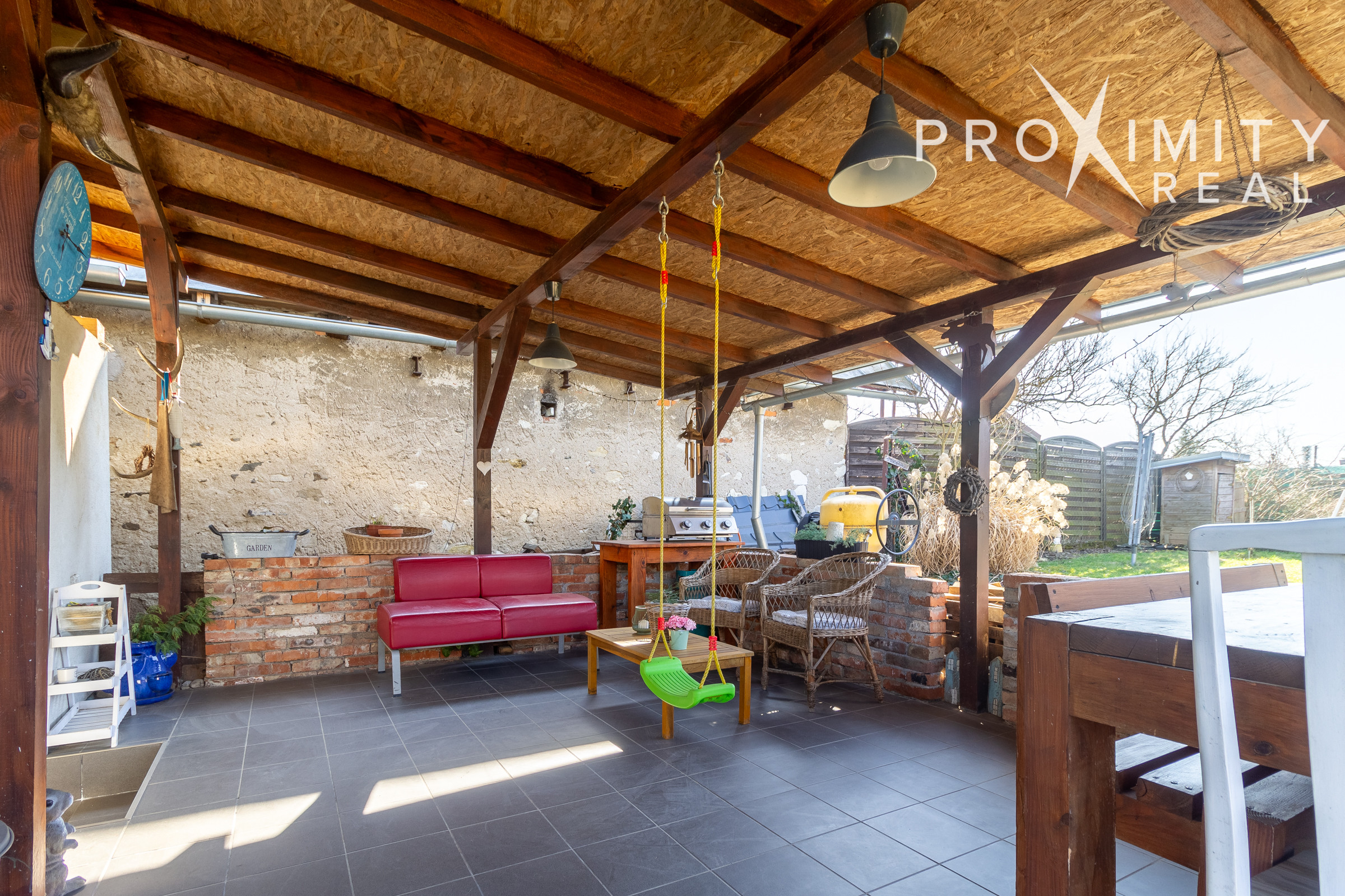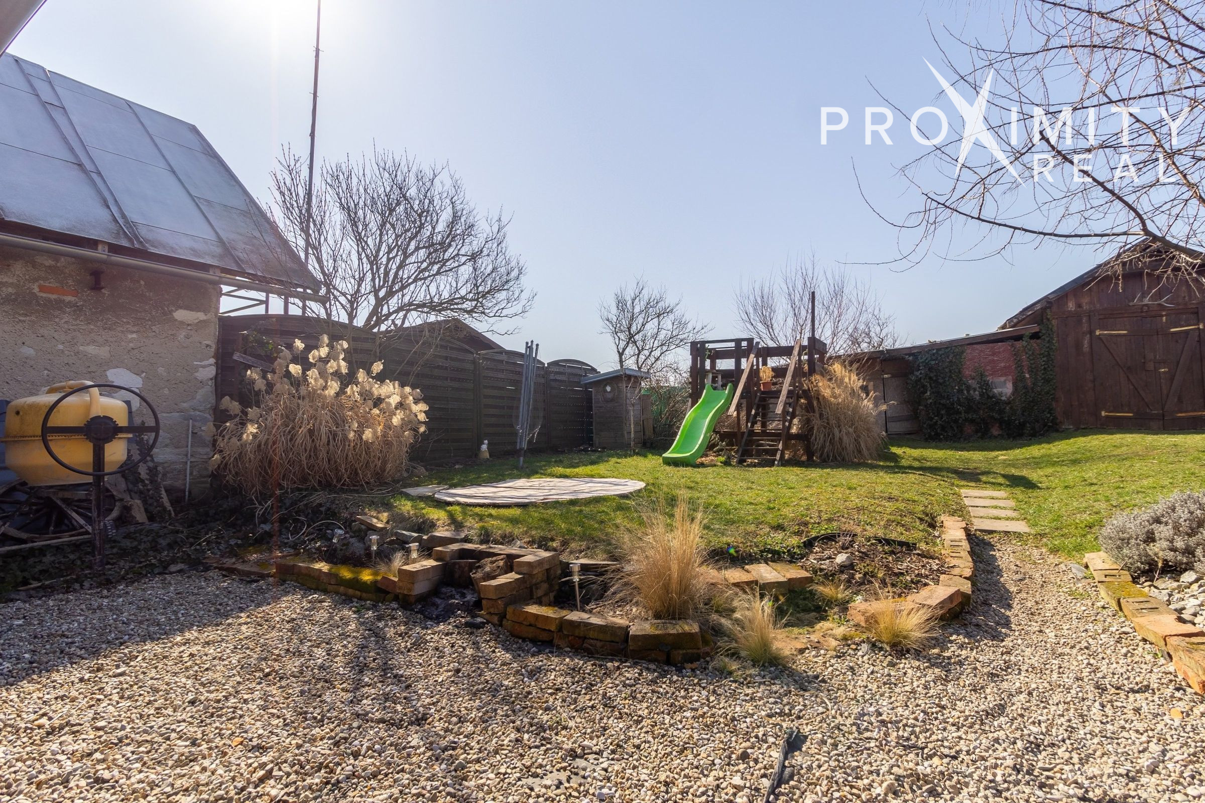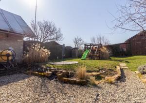 Pozemok pri dome je priestranný a ponúka množstvo možností využitia. Nachádza sa tu veranda, terasa so vstupom z kuchyne, pivnica, záhradný domček, hospodárske stajne pre zvieratá a priestor vhodný na oddych či záhradkárčenie. Záhradu dopĺňajú aj okrasné trávy, figovník či ovocné kríky, ktoré vytvárajú príjemnú atmosféru a poskytujú súkromie.