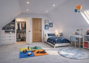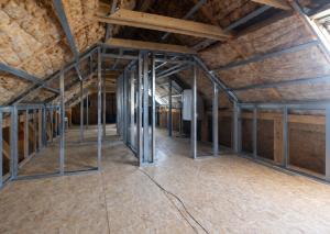 Podkrovné podlažie je aktuálne riešené ako otvorený priestor s tromi strešnými oknami, ktoré zabezpečujú dostatok prirodzeného svetla. V roku 2019 prebehla kompletná výmena strechy spolu s jej vyvýšením, aby bolo možné podkrovie plnohodnotne zobytnit. K dispozícii je platné stavebné povolenie a priestor je už čiastočne pripravený – nachádza sa tu prvá vrstva izolácie a časť sadrokartónovej konštrukcie, pričom budúci majiteľ môže dokončiť 2 až 3 samostatné izby, šatníky a kúpeľňu podľa vlastných predstáv.
