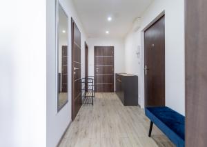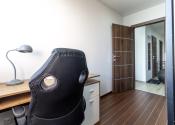Vnútorný šatník (kumbál): Absencia balkóna je inteligentne kompenzovaná týmto priestorom, vďaka čomu byt nepôsobí zastavane a ostáva vzdušný.
