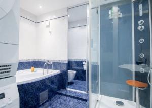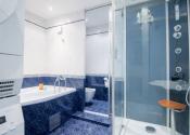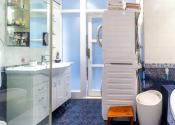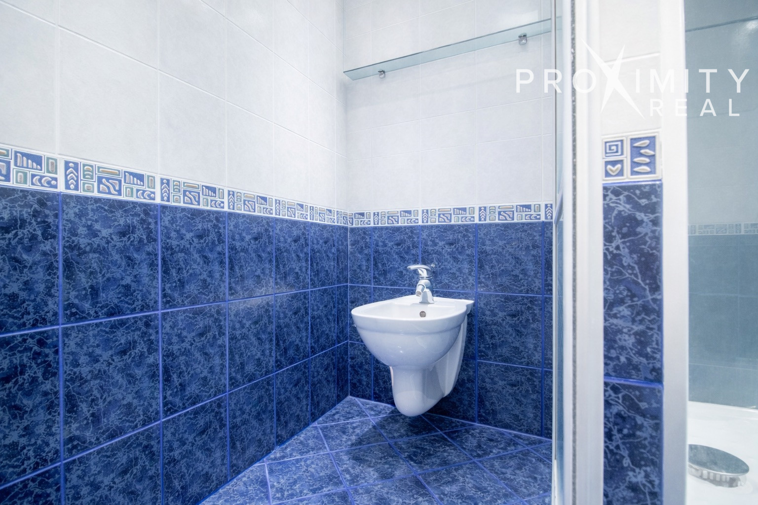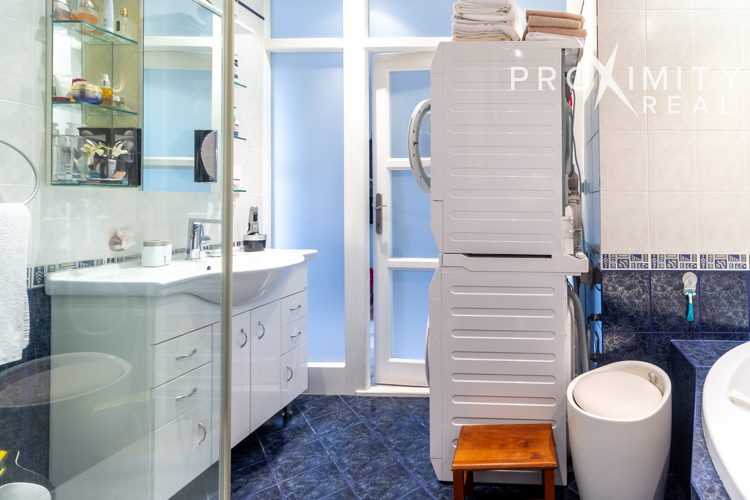 Kúpeľňa nie je len miestom hygieny, ale dokonalého relaxu. Dominuje jej luxusný hydromasážny parný box, ktorý kombinuje funkciu klasického sprchovania s blahodarnými účinkami parnej sauny a hydroterapie. Ideálny spôsob, ako vypnúť po náročnom dni.