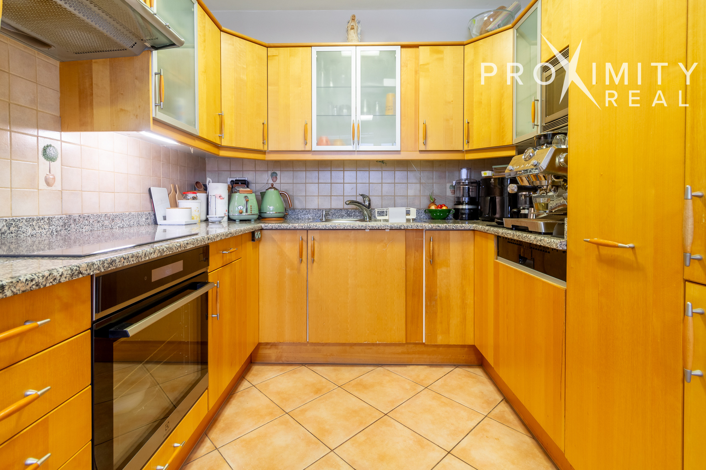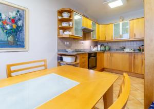Žiadne náhrady. V dennej časti vás čaká hrejivá jaseňová podlaha, v spálňach kvalitný dub. Kuchyňa dominuje pracovnou doskou z leštenej žuly.