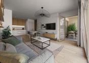 Byt je navrhnutý s dôrazom na praktické využitie priestoru a moderný mestský život. Dennú časť tvorí obývacia izba prepojená s kuchyňou, ktorá pôsobí vzdušne a prirodzene. Samostatná spálňa poskytuje dostatok súkromia a komfortu.