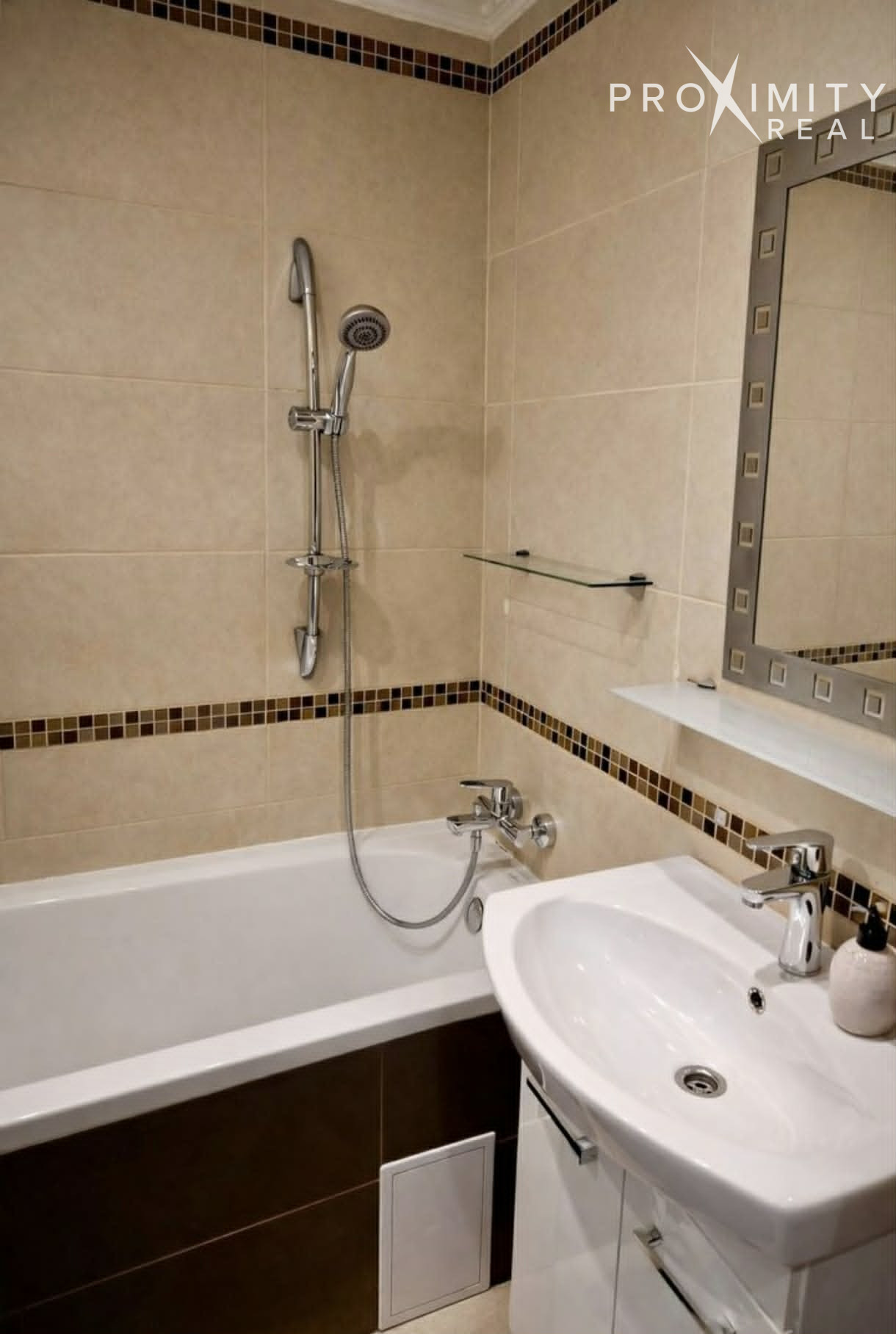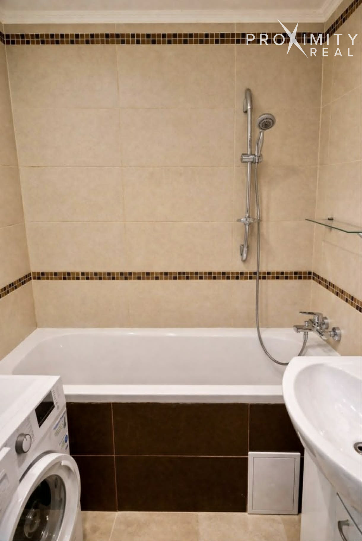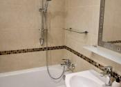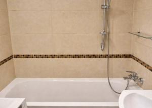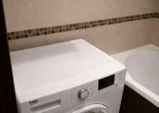 Kúpeľňa: Klasická vaňa, umývadlo so zrkadlom a automatická práčka. Toaleta je riešená samostatne pre vyšší komfort.