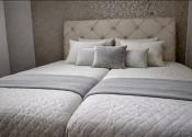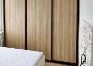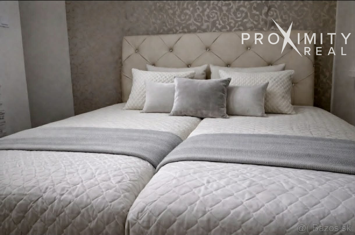 Nočná časť: Samostatná spálňa s manželskou posteľou a vstavanou skriňou na celú stenu (Roll-door).